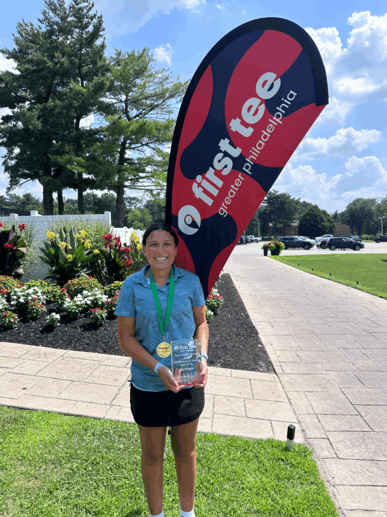Her dedication has paid off both on and off the course – from Top 3 finishes at chapter tournaments to unique experiences, like serving as a standard bearer at the 2025 Truist Championship, Addison has made the most of her time with First Tee – Greater Philadelphia. Now she’s preparing to embark on a new adventure: attending the 2025 First Tee Drive Your Future Academy presented by John Deere.